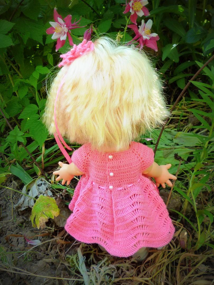 Пока высыхали процессы моей игрушки - болтушки, вязала платье для фейсинки. Мои недавно поселившиеся малышки Galoob Baby Face dolls хотят наряжаться. А у них такой хороший размерчик для нарядов не маленький и не большой.